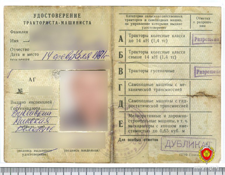 При предъявлении бумаг внимание инспекторов привлекло удостоверение тракториста-машиниста. Подлинность документа вызвала сомнения. Для проверки его направили на экспертизу.