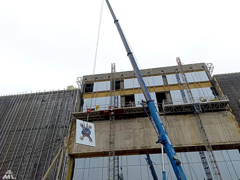 В экспозиционных залах приступили к монтажу внутренних перегородок. На 50% выполнено утепление здания, его облицовывают керамогранитом и монтируют витражи. Ведутся кровельные работы.