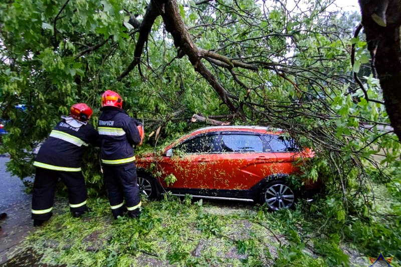 Второй вызов был на улицу Янки Купалы, где дерево упало на припаркованный легковой автомобиль Lada Vesta.