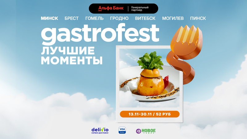 Генеральным партнером выступает Альфа Банк. По традиции гостей Гастрофеста будут ждать Альфа Бонусы, которые начислят каждому, кто оплатит сет картами Пакетов решений Альфы. Как их использовать? Потратить в ЕРИПе, покрыть ими часть стоимости банковских услуг, потратить на благотворительность или перевести в деньги. С картой Альфы не только вкусно, но и выгодно.