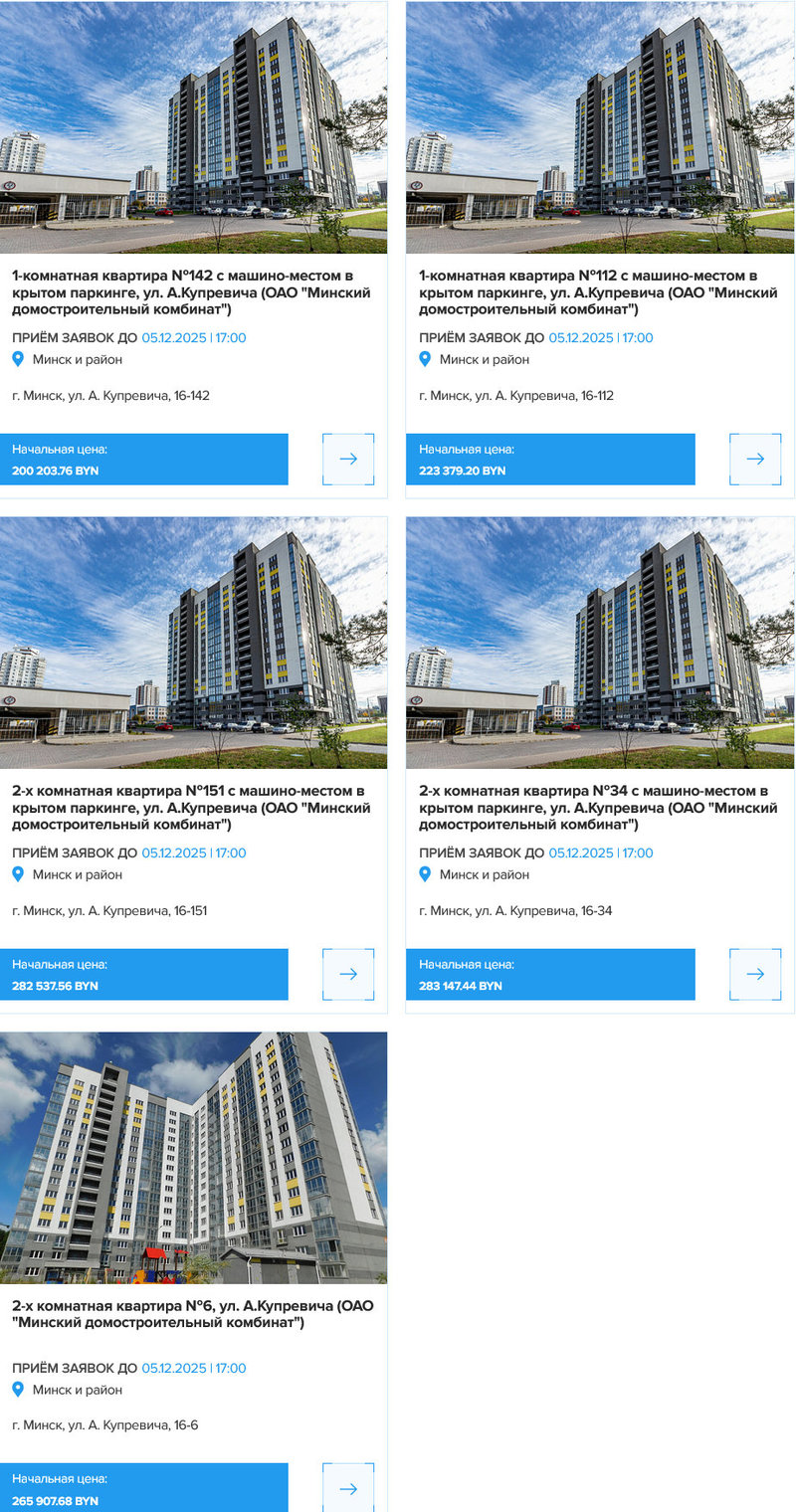 Таким образом, если не будет других претендентов на лоты, то самая дешевая 1-комнатная квартира достанется покупателю за 212.816 рублей (или примерно 71.398 долларов по актуальному курсу Нацбанка), а самая дорогая 2-комнатная потянет на 300.778 рублей (100.909 долларов).