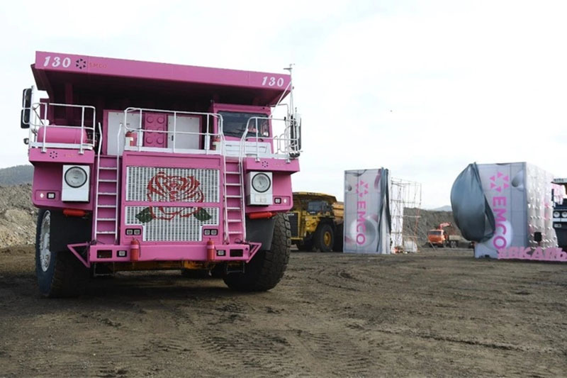 На Солнцевском угольном разрезе в рамках проекта «Девушки рулят» появился розовый карьерный самосвал — символ вовлечения женщин в рабочие профессии.