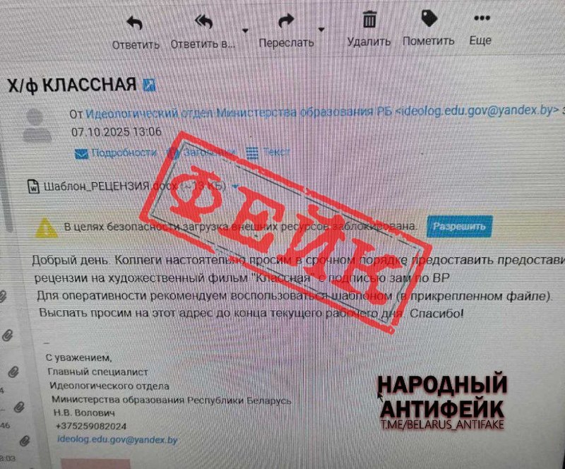 В белорусские школы приходят письма якобы с электронной почты «идеологического отдела Министерства образования». Об этом сообщает пресс-служба ведомства.