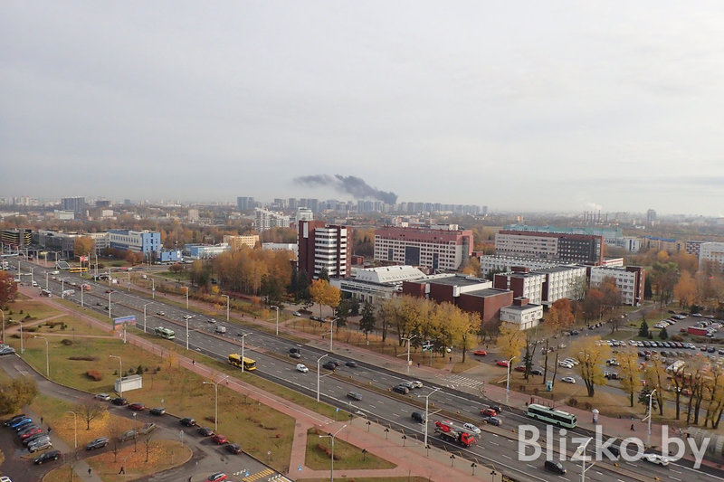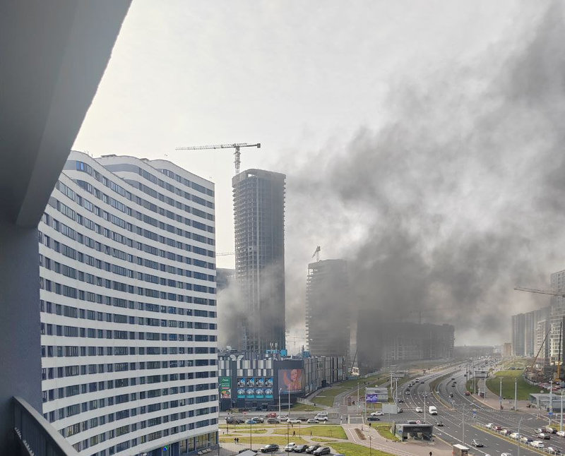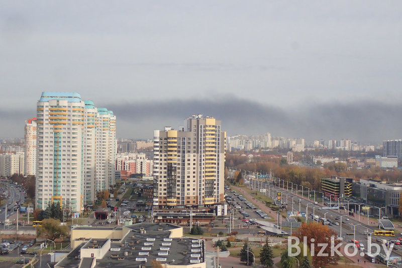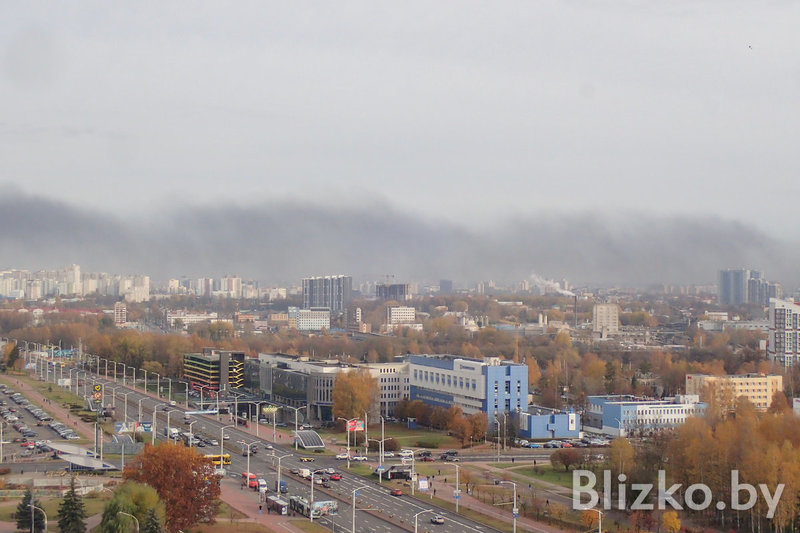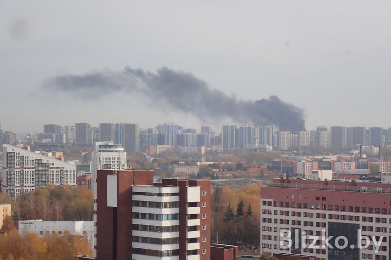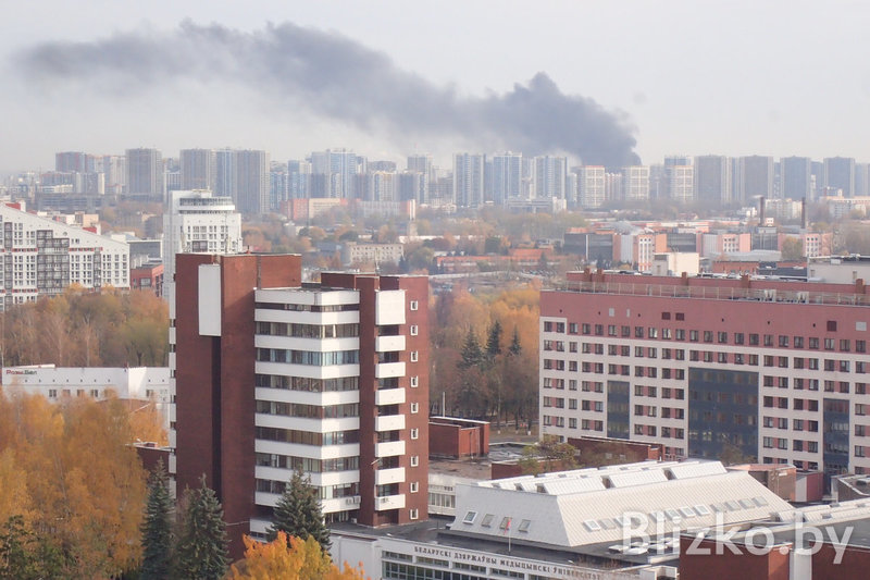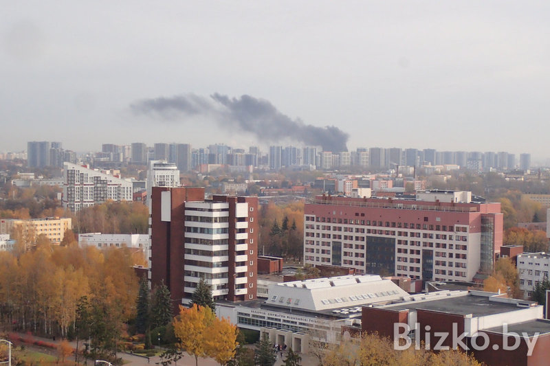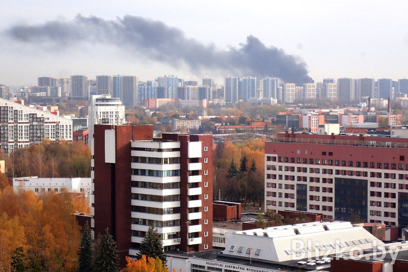 В центре Минска заметен черный дым огромного пожара. Клубы дыма поднимаются в районе Минск-Мир.