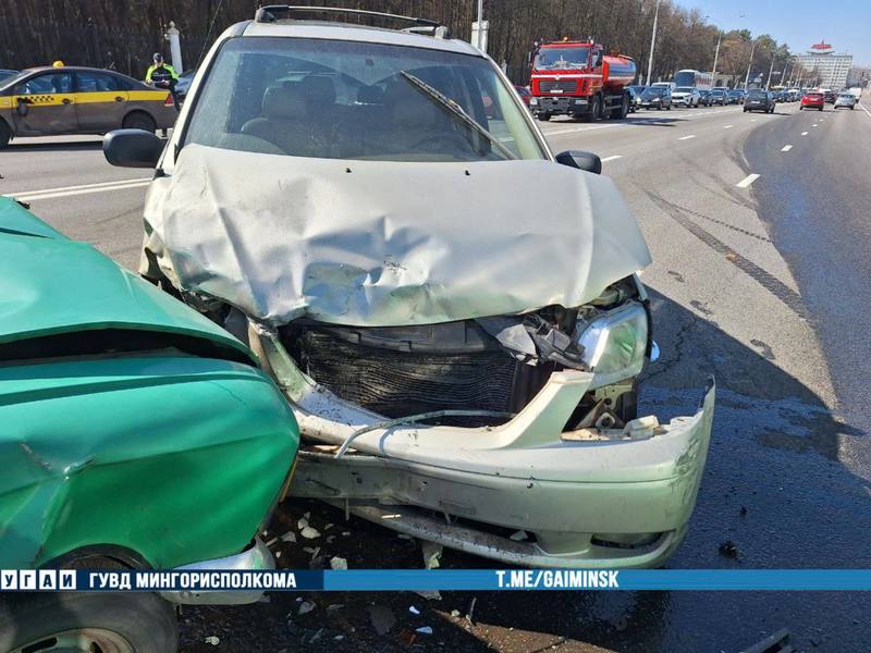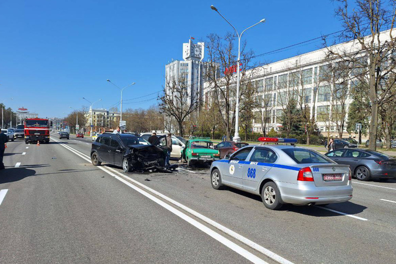 Сегодня днем на проспекте Независимости в Минске произошла крупная авария, в которой столкнулись сразу шесть машин.
