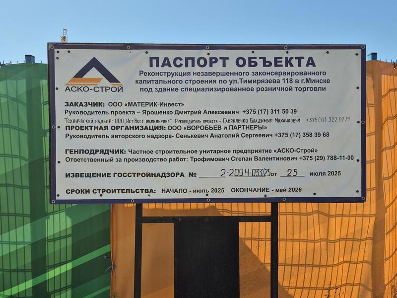 Согласно информации, полученной из паспорта объекта и опубликованной блогером Денисом Блищом в его телеграм-канале «Минск и минчанин», завершением строительства займется именно сеть «Материк».