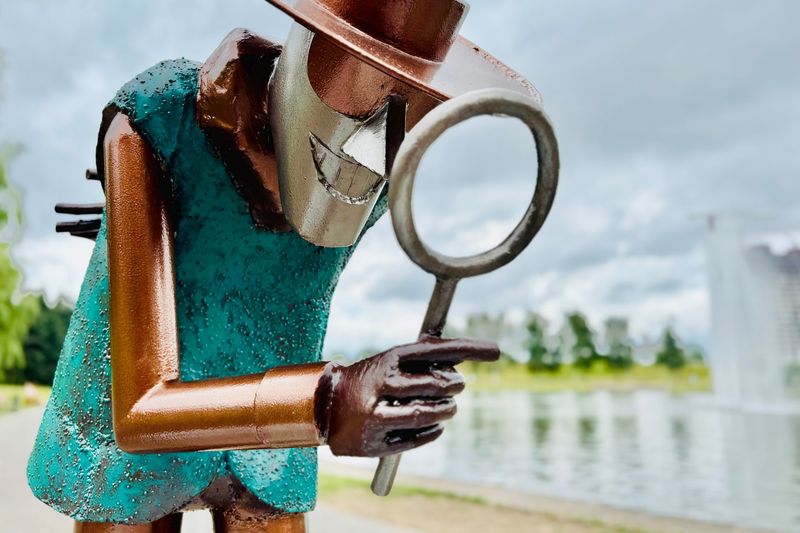 Сюжетной основой для нового городского арт-объекта стал рисунок Артема Митара, учащегося столичной средней школы №115. Скульптурная композиция представляет собой функциональную скамейку, дополненную выразительной фигурой сыщика — персонажа, придуманного ребенком.