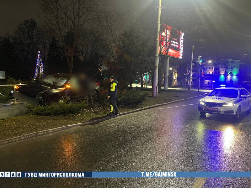 По предварительным дынным, накануне ночью 43-летний водитель автомобиля Zeekr, двигаясь по Партизанскому проспекту, на круговой развязке с улицей Ванеева не справился с управлением, выехал за пределы проезжей части и въехал в конструкцию подземного пешеходного перехода. Это произошло возле Белорусского государственного экономического университета.