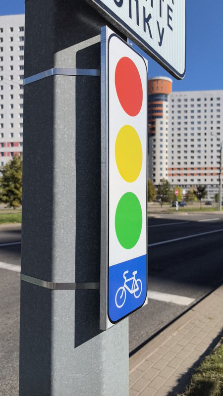 Оказалось, что велосветофоров в городе очень мало, а мест, где можно было бы проезжать, не спешиваясь, намного больше. И тогда ГАИшники придумали новшество: специальные таблички, обозначающие светофор. То есть, этакий светофороимитатор.