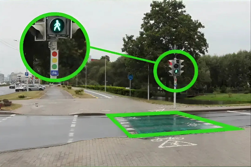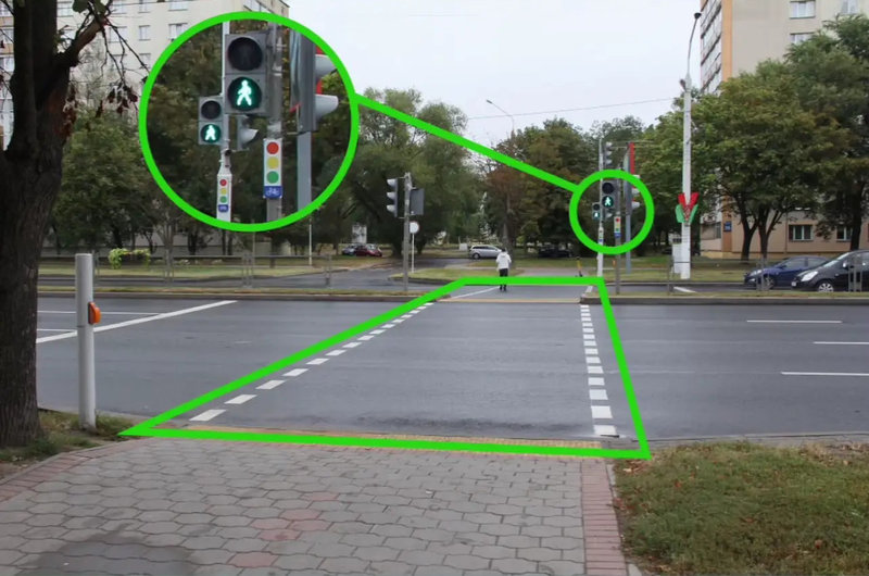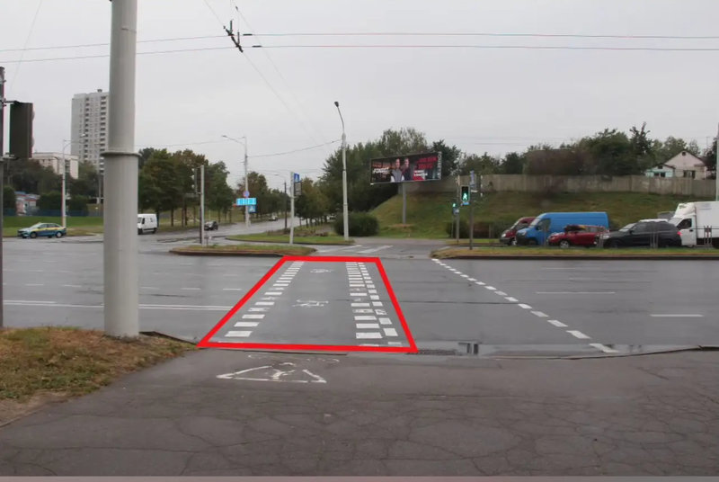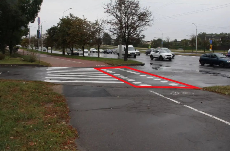 Почему? Потому что велопереезд этот находится не на перекрестке. Сложно поверить, но это именно так — сейчас докажем.
