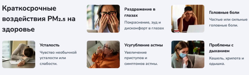 Важно смотреть на такой показатель, как ТЧ-10, ТЧ-2.5 и ТЧ-1.0. Это содержание твердых частиц диаметром 10, 2,5 и 1,0 микрометра. В англоязычном мире их называют, соответственно, PM10, PM2.5 и PM1.0.