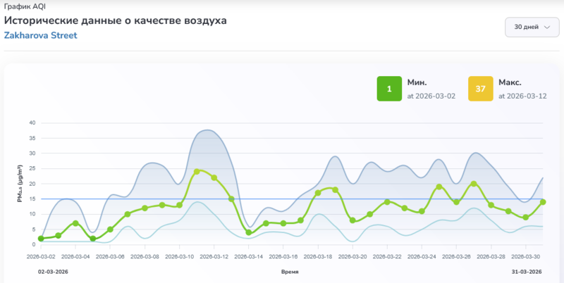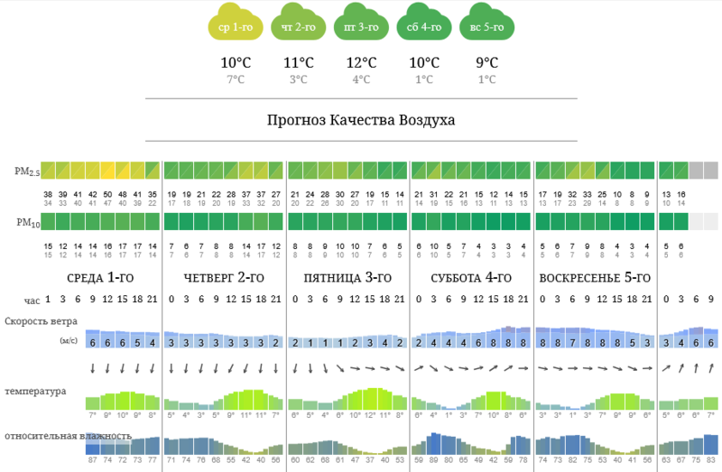 Зато, исходя из предыдущих значений, система составляет и прогноз качества воздуха на ближайшие дни.
