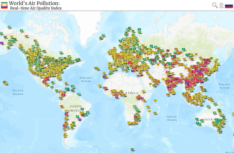 Еще один сервис, где данными о качестве воздуха могут делиться все желающие. Сервис китайский, но работает по всему миру: более 80 стран и более 10 тысяч датчиков. Есть перевод на русский — не идеальный, но вполне неплохой.