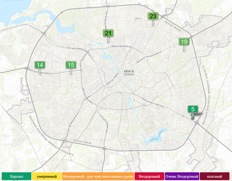 Эта общебелорусская система заработала в 2022-2023 годах и теперь показывает данные из 28 городов.