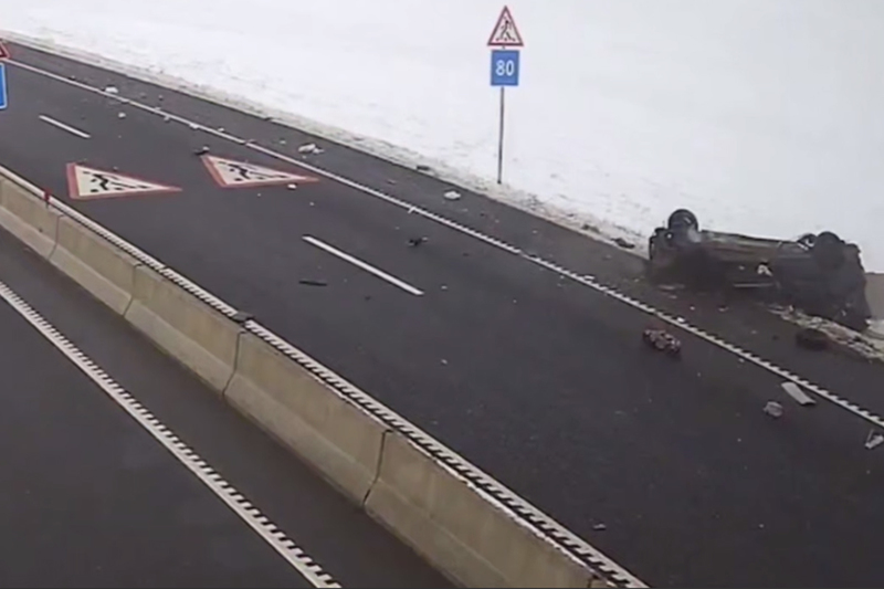 Водитель был в утомленном состоянии и на участке дороги в районе деревни бискупцы Лидского района заснул прямо за рулем. Автомобиль на скорости вылетел с трассы, наехал на рельс безопасности и перевернулся. Момент аварии попал на камеры наблюдения.