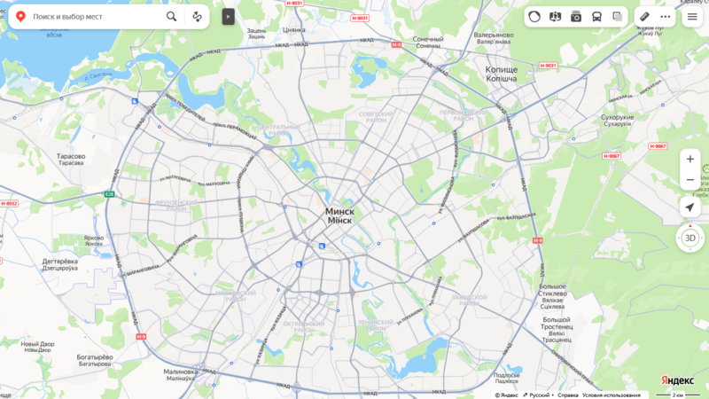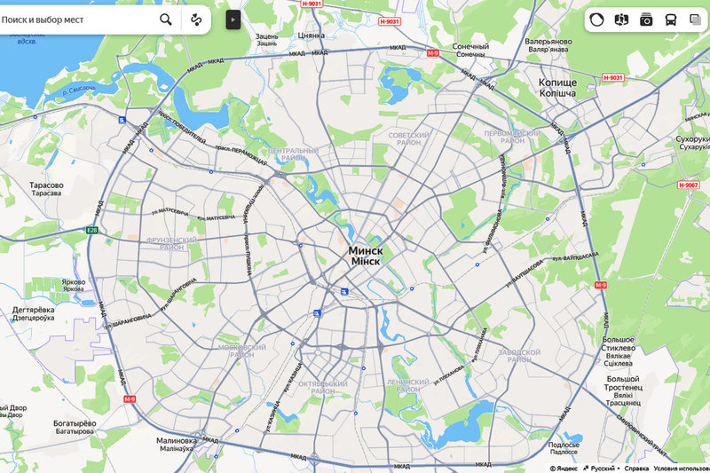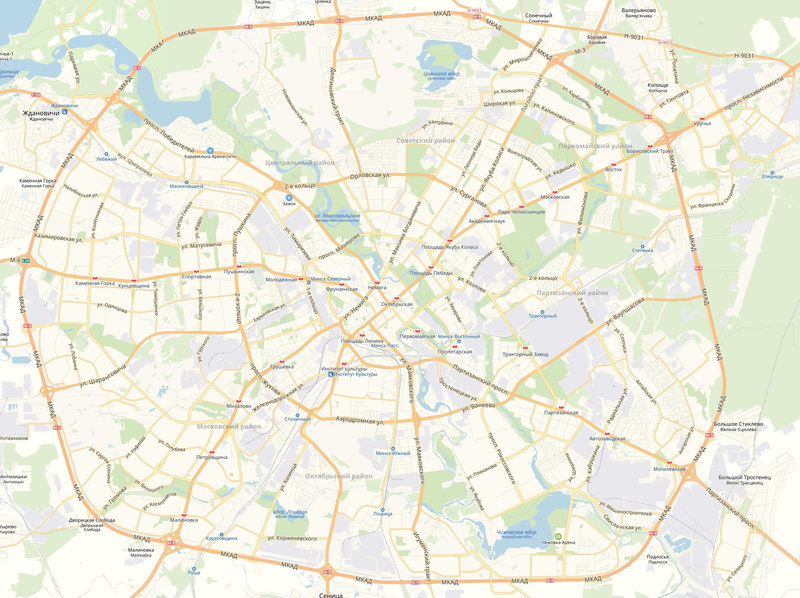Яндекс.Карты изменили дизайн, пользователи из Беларуси уже могут заметить изменения. самое явное бросается в глаза сразу, когда открываешь карты в браузере или в приложении. Раньше все дороги были раскрашены «теплым» желто-песочным цветом, кварталы — оттенком посветлее. Вот так еще недавно выглядела карта Минска.