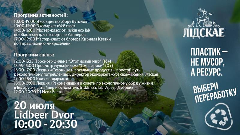 В воскресенье 20 июля в пространстве Lidbeer Dvor на ул. Гикало, 5 состоится экологическая акция «Пластик не мусор, а ресурс. Выбери переработку!»
