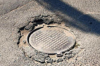 В Слуцке частный люк оказался прямо на дороге — и поэтому городские власти не могут заделать яму