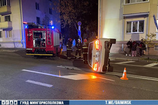 В Минске BMW врезался в «Ниву» и опрокинулся