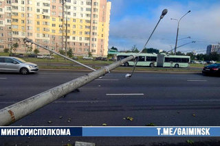 В Минске водитель врезался в столб с контактной сетью и опрокинул его на дорогу. Троллейбусы не ходили больше двух часов