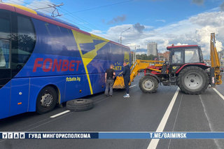 В Минске у автобуса на ходу отлетели сразу два колеса — а тракторист придержал его ковшом, чтобы не опрокинулся