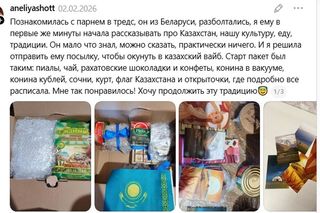 «Ну что, белорусы! Ваш парнишка вас не подвел!» — Казашка и белорус обменялись посылками с местными деликатесами. А что было внутри?